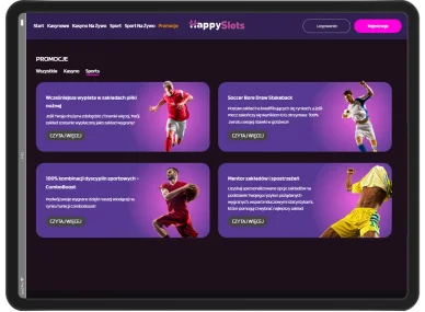 W poniższych fragmentach tekstu opiszę premie HappySlots Casino online skierowane do typerów. Internetowy klub hazardowy opracował atrakcyjną i hojną ofertę bonusową, która ma na celu zachęcenie polskich graczy do obstawiania popularnych i niszowych dyscyplin sportowych.