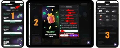 Użytkownik, który ma zamiar grać na pieniądze, powinien nie tylko się zarejestrować, ale także doładować indywidualne konto w kasynie. Wpłata depozytu do Hexabet Casino jest szybka i intuicyjna — wystarczy wykonać kilka prostych kroków, aby uzyskać dostęp do wszystkich produktów kasyna.