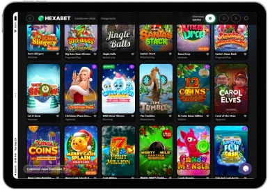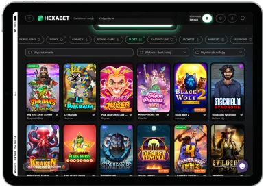 Kasyno online ma w swoim portfolio ponad 7500 gier kasynowych, w tym maszyny slotowe, gry karciane, różne wersje ruletki, gry crash i loterie. Oferowane przez Casino Hexabet gry hazardowe zostały podzielone na następujące kategorie: Sloty, Kasyno Live, Jackpoty, Minigry, Turnieje, Gry Stołowe. Klub hazardowy regularnie powiększa swoją bibliotekę o nowe tytuły.