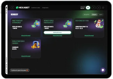 Polscy gracze, którzy założą konto w kasynie online, mogą korzystać z atrakcyjnego programu bonusowego, który zawiera m.in. premię za rejestrację, weekendowe ładowanie nagrodami i ekskluzywny bonus cashback. Bonusy oferowane przez Hexabet kasyno wyróżniają się korzystnymi i warunkami.