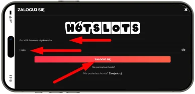 - Następnie zostaniemy przekierowani do podstrony HotSlots logowanie, na której musimy wskazać adres poczty elektronicznej/login i hasło, po czym kliknąć Zaloguj się. Gotowe!