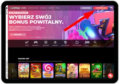 - W pierwszym kroku należy wejść na stronę serwisu hazardowego i kliknąć guzik Zarejestruj się.