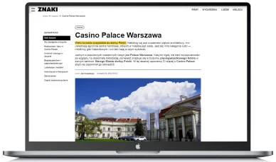 Casino Palace | Senatorska 13/15 | Automaty, gry stołowe | 22 829 64 00 | 24/7 |