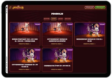 Sprawdzając ofertę magius, odkryłem różnorodne promocje, takie jak bonusy powitalne, darmowe spiny i cashbacki, które sprawiają, że gry i ogólnie hazard online stają się bardziej atrakcyjne. Program VIP zapewnia dodatkowe korzyści dla lojalnych graczy. Dzięki tym cechom, Magius wyróżnia się jako nowoczesna i przyjazna platforma dla miłośników hazardu i zakładów sportowych.