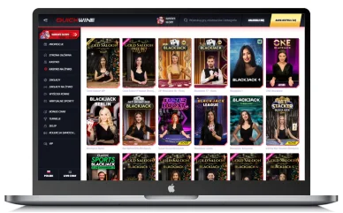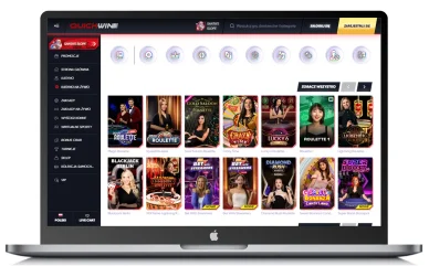 Istotnym elementem oferty zapewnianej przez to polskie kasyno internetowe jest również selekcja gier na żywo, które prowadzone są przez krupierów w języku angielskim. Znajdziemy tutaj wiele różnorodnych kategorii QuickWin: Najwyżej Oceniane, Gold Saloon, Ruletka, Blackjack, Pokazy Gier, Bakarat i Kości, Poker, Dookoła Świata oraz Kasyno na Żywo. Dostępne tutaj gry to przede wszystkim poker, ruletka, bakarat, kości, teleturnieje, pokazy na żywo oraz blackjack. Oto kilka najlepiej ocenianych gier w ofercie: