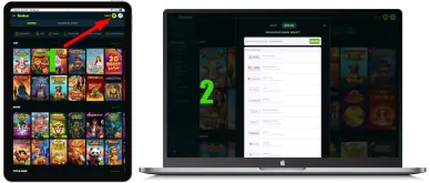 - Kliknąć ikonę portfela na stronie głównej kasyna;