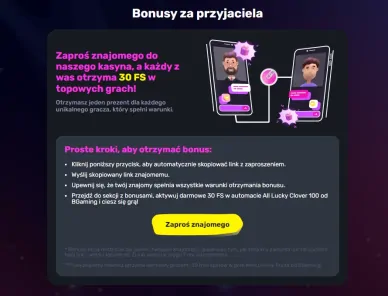 Zaproś znajomego do kasyna, a każdy otrzyma 30 FS w najlepszych grach!