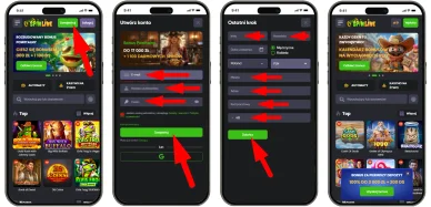 - Po wejściu na stronę kasyna online gracz powinien kliknąć zielony guzik Zarejestruj się (prawy górny róg).
