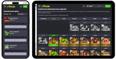 - Sklep. W kasynowym e-sklepie użytkownik może wymienić monety na free obroty.