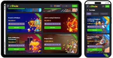 Polskie kasyno online oferuje swoim zarejestrowanym użytkownikom zarówno duży wybór promocji, w tym codzienny bonus Spinline, jak i najlepsze turnieje kasynowe. Uczestnictwo w turniejach otwiera graczom drogę do różnych nagród pieniężnych. Im wyższe miejsce w tabeli turniejowej, tym wyższa kwota do zgarnięcia.
