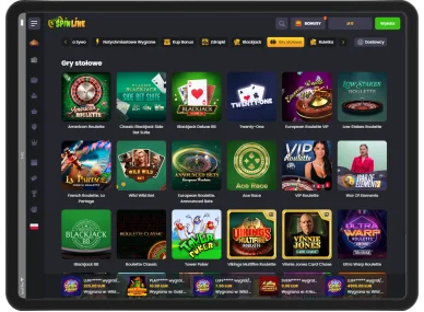W tej sekcji użytkownik Spinline Casino Polska znajdzie duży wybór różnych wersji ruletki (American Roulette, Automatic Roulette 500X), pokera (Poker King, Texas Hold’em), blackjacka (Premium European Blackjack) i bakaratu (Baccarat BB). W gry stołowe można grać tylko na pieniądze, więc przed uruchomieniem wybranego tytułu, należy zasilić swoje konto.