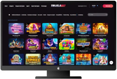 W centralnej części ekranu jest pasek odsyłający do kategorii związanych z grami. Znajdują się tam odesłania do nowych gier, rekomendowanych tytułów, automatów, rozgrywek na czasie, wyborów popularnych w kraju, dostawcy miesiąca, Kasyna na żywo, “Drops& Wins” oraz “Feature Buy”. Na samym dole strony TrivelaBet zamieszcza wszystkie regulaminy korzystania ze strony, zasady odpowiedzialnej gry i uprawiania hazardu oraz informacje o samym kasynie i kontakcie z nim. Wsparcie czatu na żywo znajduje się w prawym dolnym rogu ekranu.