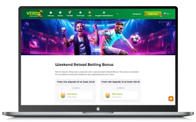 Kasyno online Verde oferuje typerom, którzy regularnie grają w serwisie atrakcyjny weekendowy bonus Verde reload. Wartość bonusu zależy od wysokości wpłaconego depozytu. Jeżeli gracz wpłaci do kasyna online min. 40 zł, to może odebrać promocję o wartości 50% od depozytu do 1200 zł.