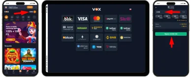Pieniądze wpłacone do Vox Casino online zostaną zaksięgowane na indywidualnym koncie gracza natychmiast.