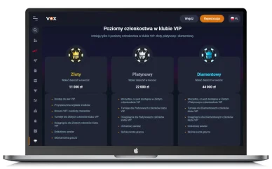Każdy klient, tuż po założeniu konta w polskim kasynie online, automatycznie dołącza do programu lojalnościowego. Składa się on z 6 statusów. Nowy gracz otrzymuje status Początkujący. Aby otrzymać kolejny status w Vox kasyno, należy zgromadzić określoną liczbę punktów lojalnościowych. Za każde postawione 10 zł w grach, użytkownik otrzymuje 1 pkt. Im wyższy status klient posiada, tym atrakcyjniejsze benefity otrzymuje od kasyna online Vox, m.in. może liczyć na hojniejszy cashback i lepszy kurs wymiany punktów na gotówkę.