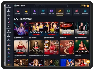 Gry na żywo to kategoria, która zyskuje coraz większą popularność wśród graczy z Polski. Kasyno WinShark udostępnia swoim klientom różne odmiany popularnych gier stołowych i karcianych, w które można zagrać w czasie rzeczywistym. Do dyspozycji graczy są takie popularne gry internetowe jak poker, kości, bakarat, teleturnieje, ruletka, blackjack i wiele innych. Najbardziej popularne tytuły z tej kategorii to VIP Roulette — The Club, Prive Lounge Baccarat 1, Blackjack X 2 — Azure.