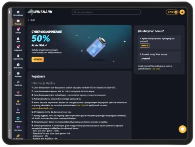 Klienci kasyno WinShark mogą zanurzyć się w futurystycznej rozgrywce hazardowej z niezwykłym bonusem Cyber Doładowanie, który jest dostępny każdego tygodnia od piątku do niedzieli. Gracze mogą cieszyć się 50% bonusu aż do 1300 PLN przy minimalnym depozycie 90 PLN lub więcej, otwierając drzwi do jeszcze większych wygranych w tym kasynie online.