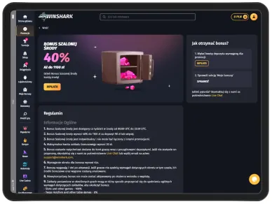 Kasyno internetowe przyciąga graczy szeroką ofertą bonusów i promocji. Do dyspozycji klientów z Polski i zagranicy są nagrody startowe i bonusy online dla weteranów witryny. Niestety operator hazardowy nie opracował jeszcze bonusu bez depozytu. Przed aktywacją dowolnej nagrody warto zapoznać się z regulaminem promocyjnym. Każdy WinShark bonus podlega określonym warunkom obrotu, które należy spełnić, aby wypłacić wygrane z nagrody.