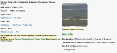 Transmisja online na żywo z międzynarodowego lotniska w Warszawie