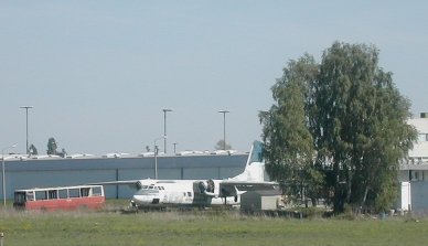 Wraki samolotu An-24 w barwach PLL LOT i dawnego warszawskiego Ikarusa 260 jako obiekty ćwiczeń strażackich przy terminalu Cargo