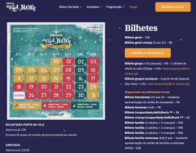Bilhetes para assistir a Óbidos vila natal: tipos de bilhetes e respectivos preços