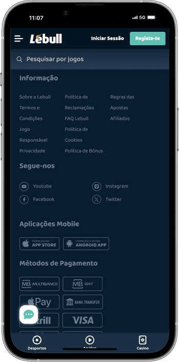 A aplicação do LeBull Casino está disponível para sistemas operativos Android e iOS. Os procedimentos são distintos, mas ambos começam no site oficial. A app traz todas as funções e serviços da plataforma, como: