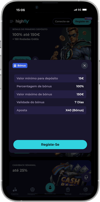 O deposito mínimo, para cada um dos bónus, é de 20€. O bónus tem um rollover de x40 e deve ser completado nos 7 dias seguintes após ativação.