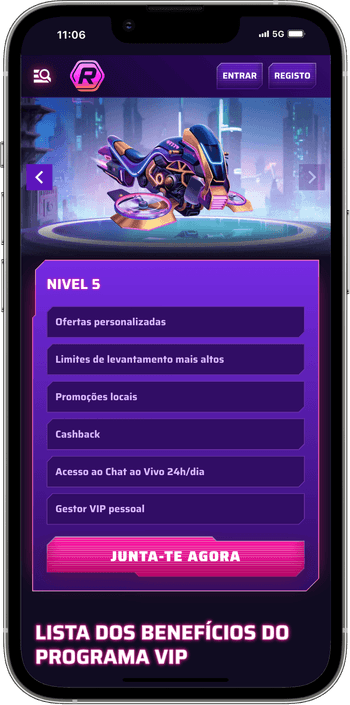 Além disso, o Roby apresenta o emocionante casino ao vivo, onde pode interagir com dealers reais e outros jogadores portugueses em tempo real através de transmissão de vídeo de alta qualidade. É uma experiência imersiva que simula a atmosfera de um casino físico. Juntam-se a estes os jogos de raspadinha, bingo e keno, que completam a vasta oferta e garantem entretenimento.