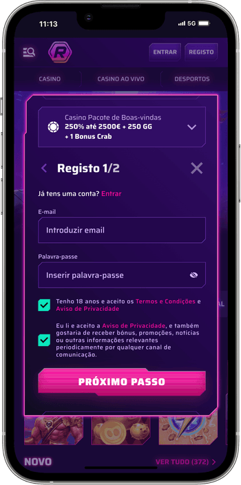 Para criar uma conta no Roby casino, o novo jogador deve passar pelas seguintes etapas: