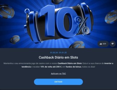 O Twin Casino também oferece uma funcionalidade de reembolso diário de 10% para os jogadores, proporcionando uma camada adicional de valor. O reembolso é calculado no final do dia como uma percentagem das perdas líquidas e pode chegar aos 10%. Os pagamentos em fundos de bônus são limitados a 200 Euros. Isto significa que quando tiver um dia mau e perder saldo, o casino dar-lhe-á oportunidades adicionais de ganhar.