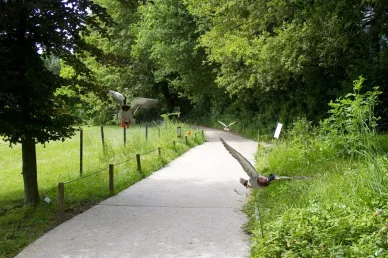 De particular valor são 40 espécies de aves, incluindo muitas espécies protegidas que são raras na Europa, como o ganso de bico branco e a majestosa cegonha preta. Também se pode observar o comportamento de garças, corujas, grous e outras aves que circulam livremente no parque.