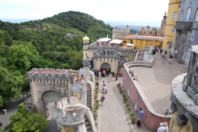 No Palácio da Pena, pode ver elementos de arquitetura gótica, renascentista, manuelina e mourisca, bem como impressionantes jardins, torres, muralhas e uma variedade de salas decoradas com mobiliário da época.