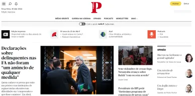 O Público é um portal de notícias e um jornal online que disponibiliza informação actualizada sobre vários temas: política, sociedade, economia, cultura, ciência, desporto e tecnologia. É um dos principais órgãos de comunicação social em Portugal, que tem como objetivo fornecer informação rigorosa, imparcial e actualizada aos seus leitores.