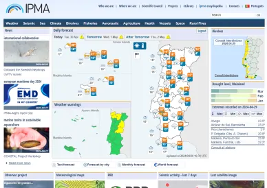 O sítio web do Instituto Português do Mar e da Atmosfera, I.P. (IPMA, I.P.) é uma plataforma online especializada e gratuita que contém uma variedade de informações e serviços relacionados com o clima, meteorologia, oceanografia, sismologia, recursos marinhos e muito mais.