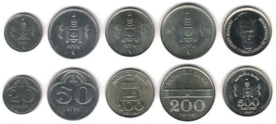 В Монголии сейчас находятся в обороте банкноты 11 номиналов и монеты 5 номиналов.