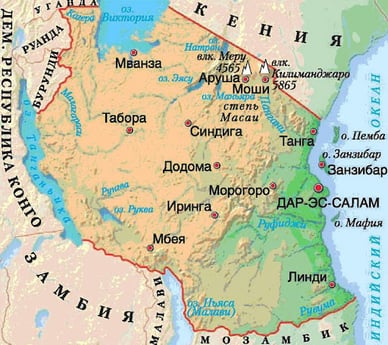 Танзания - восточно-африканская страна, граничащая с восемью странами: