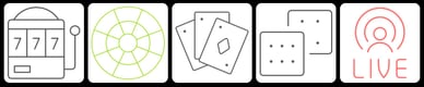 Kategorije iger | Igralni avtomati, ruleta, baccarat, blackjack, igralne oddaje |