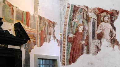 Motivi fresk na južni steni prikazujejo prizore iz življenja Marije.