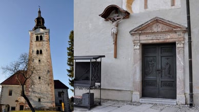 Vhod v cerkev Marijinega vnebovzetja, Bled
