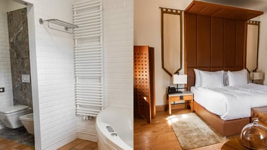 Najbolj razkošna soba je Royal suite, ki je opremljena z naravnimi materiali in jo odlikuje visoka raven udobja, vključuje prostorno kopalnico s hidromasažo in dežnim tušem.