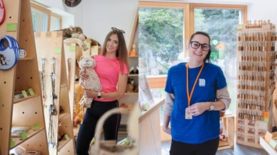 V trgovini s spominki prodajajo knjige o naravi in različne dodatke, ki spominjajo na potovanje med drevesi Pohorja.
