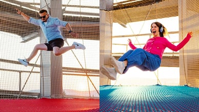Še ena zabava, ki jo obiskovalcem ponuja Pot med krošnjami Pohorje, je trampolin. Nahaja se na vrhu razglednega stolpa, na višini več kot 30 metrov nad tlemi. Skočite na trampolinu in doživite pravi adrenalin.