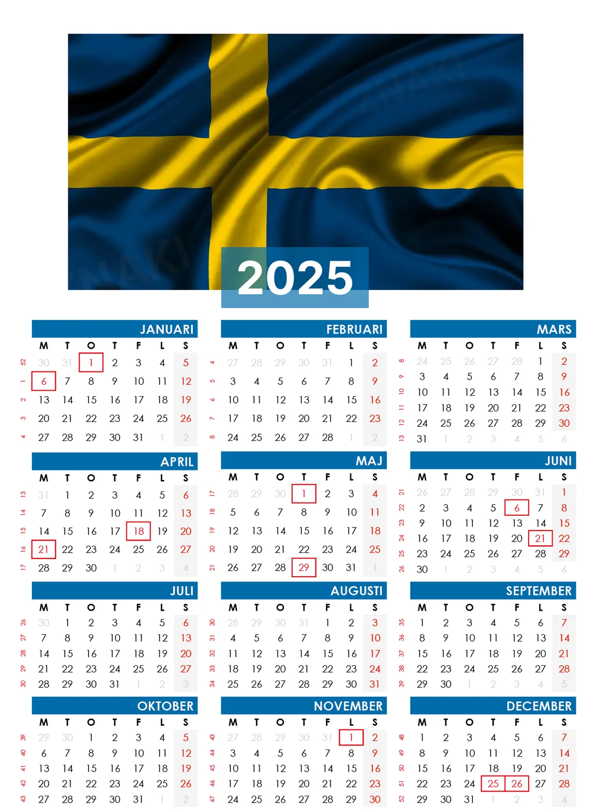 21.06.2025 | Midsommardagen | Lördag | Offentlig helgdag |