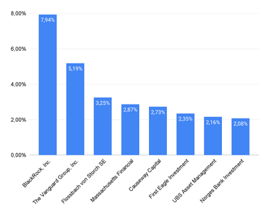 Reckitt Benckiser is owned by many well-known investment funds and private investors. Currently, the following entities control the largest share of the company's shares: