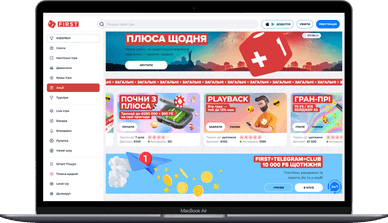 Відчуйте атмосферу віртуального казино в лайв-апаратах, грайте зі справжніми дилерами, спілкуйтеся з іншими користувачами в режимі реального часу. Крім цього, доступні слоти онлайн-казино First, настільні ігри, рулетка, краш-ігри.