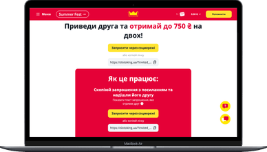 Запросіть друга у соцмережах чи за реферальним посиланням.