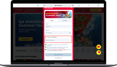 Щоб отримати бонус за реєстрацію в Слотокінг, необхідно створити новий обліковий запис і поповнити рахунок на вказану вище суму.