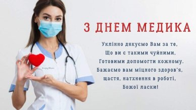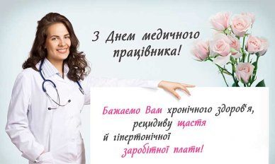 Шановні медичні працівники, зі святом вас! Ваш труд – це справжнє служіння людству. Дякую вам за те, що завжди готові прийти на допомогу, за вашу мужність та милосердя. Бажаю вам успіхів у всіх починаннях, міцного здоров’я та незабутніх радісних моментів!