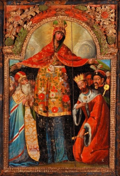 "Покров Богородиці" із зображенням Богдана Хмельницького і архієпископа Лазаря Барановича. Перша половина XVIII ст.