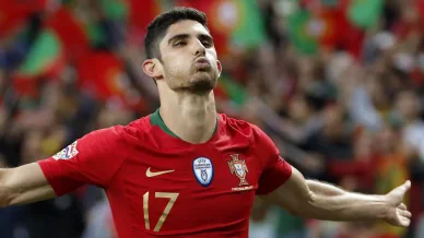 Португалець Гонсало Гедеш після того, як забив переможний гол у першому фіналі Ліги націй УЄФА